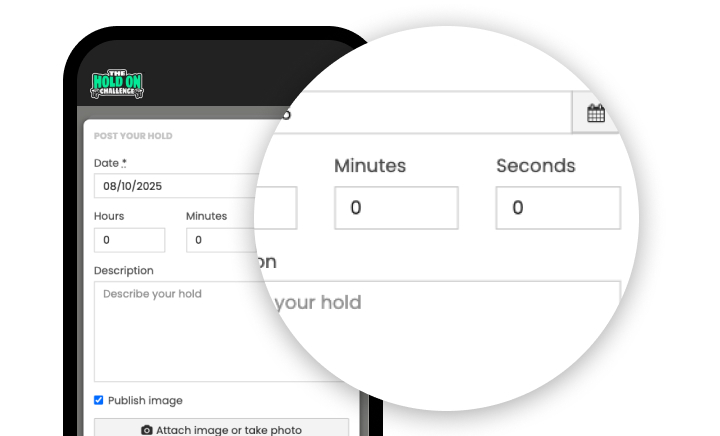 Within the pop-up you can add your hold time, write a few words about your challenge, and add a picture to show where you took part! Tap 'Create' to post your hold.